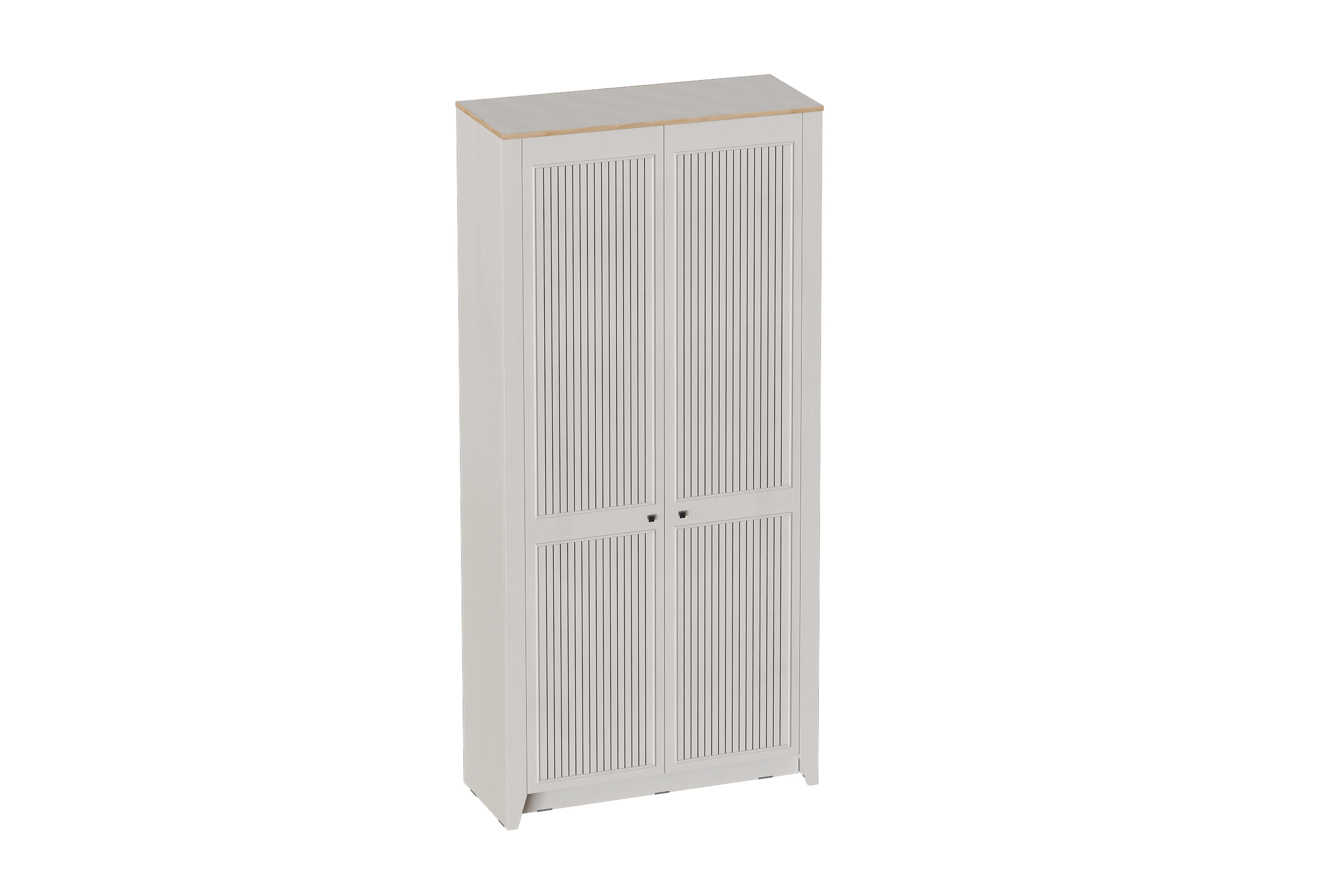 Шкаф 2 дверный Валенсия выполнен из (ЛДСП) в комбинации Дуб натуральный светлый / Персидский жемчуг.