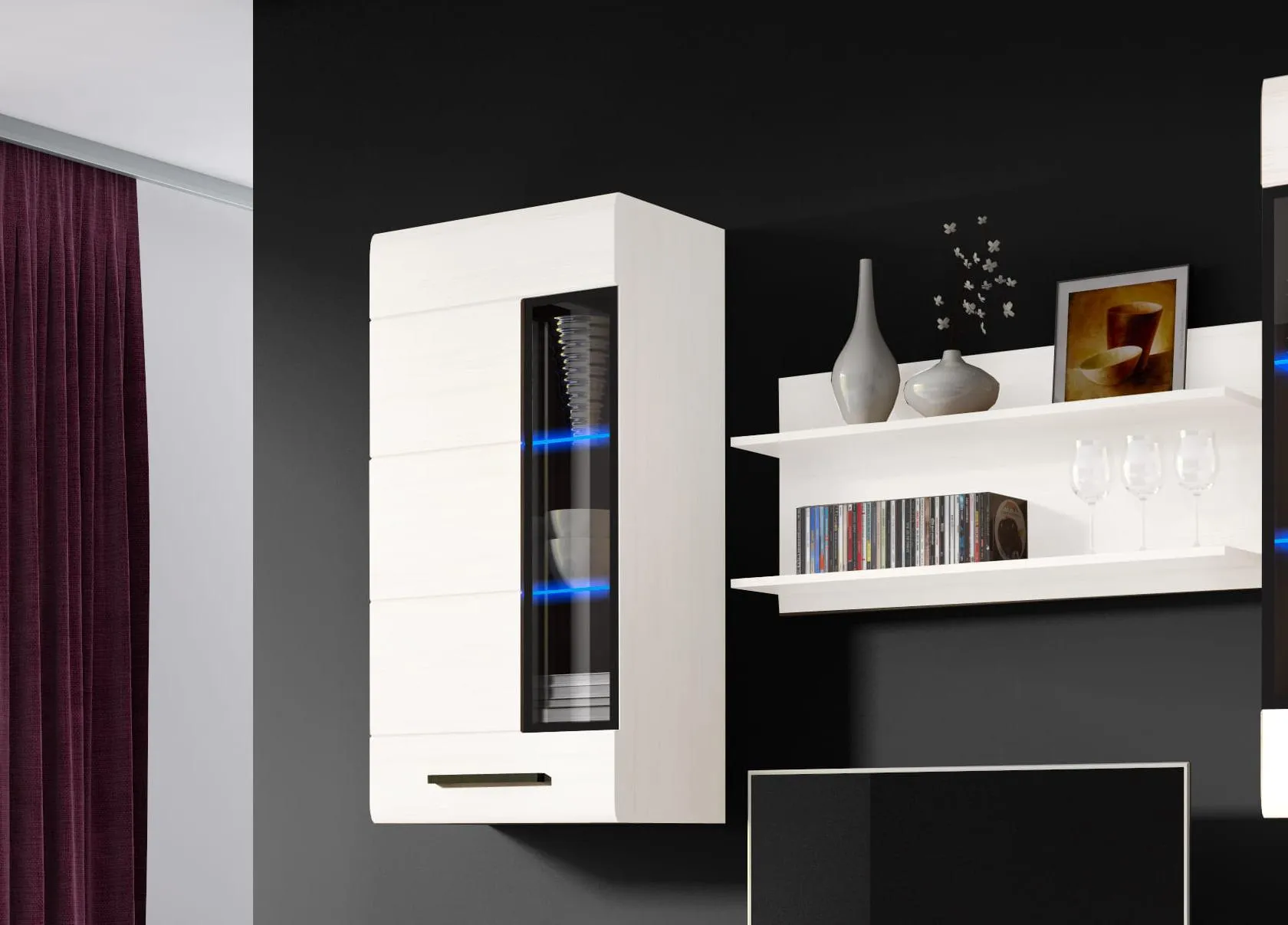 Шкаф-витрина "Кельн" с подвесной системой — это отличное решение для создания стильного и функционального интерьера. Этот шкаф идеально подойдет для хранения различных предметов, таких как посуда, книги, сувениры и другие декоративные элементы.