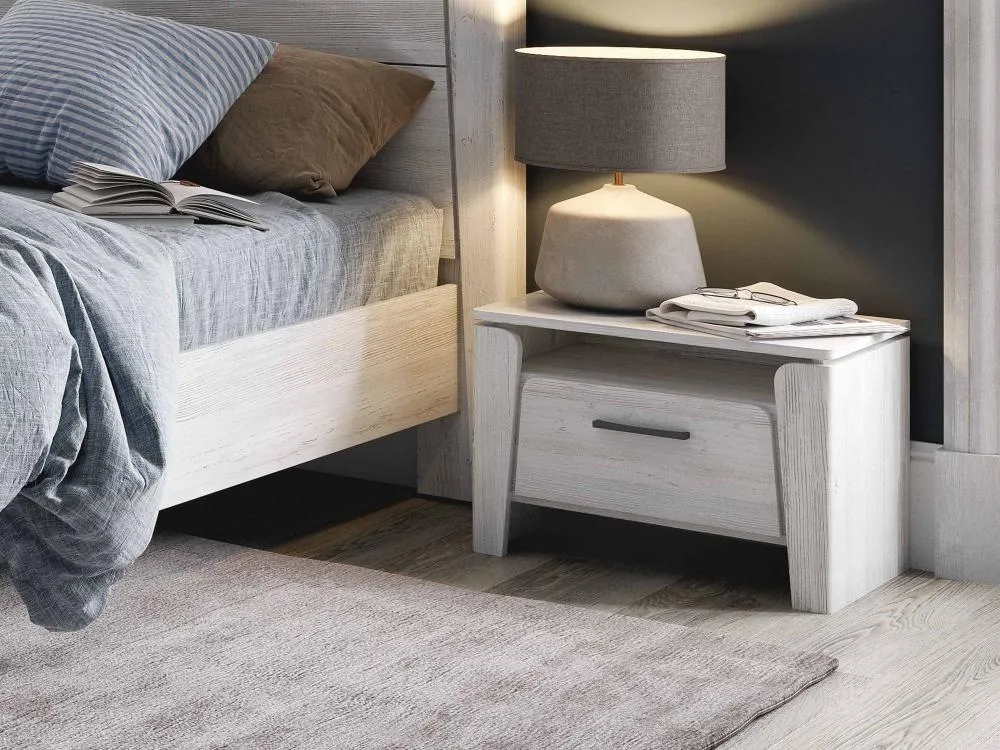 Благодаря компактным размерам, она не занимает много места и позволяет рационально использовать пространство спальни. Тумба оснащена одним ящиком, который идеально подходит для хранения личных вещей и аксессуаров. Шариковые направляющие обеспечивают плавный и бесшумный ход ящика, позволяя быстро и легко найти нужную вещь.