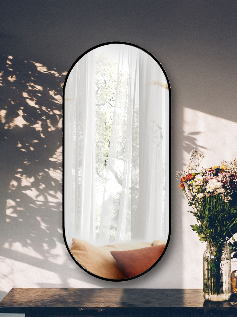 Зеркало можно располагать на стене вертикально или горизонтально.